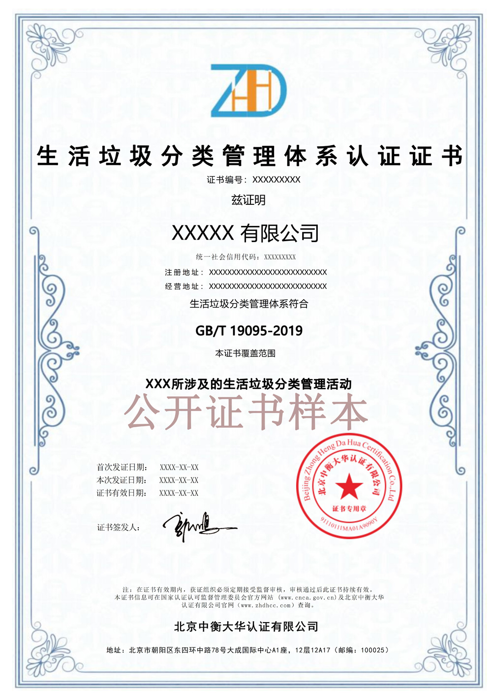 生活垃圾分类证书电子板-中衡大华