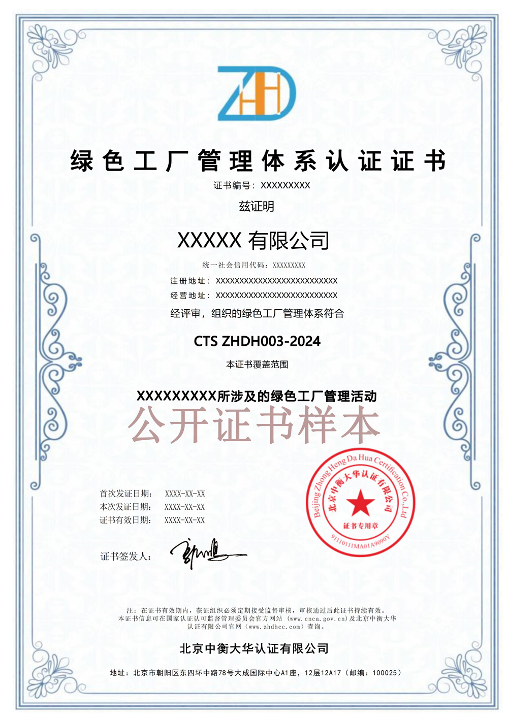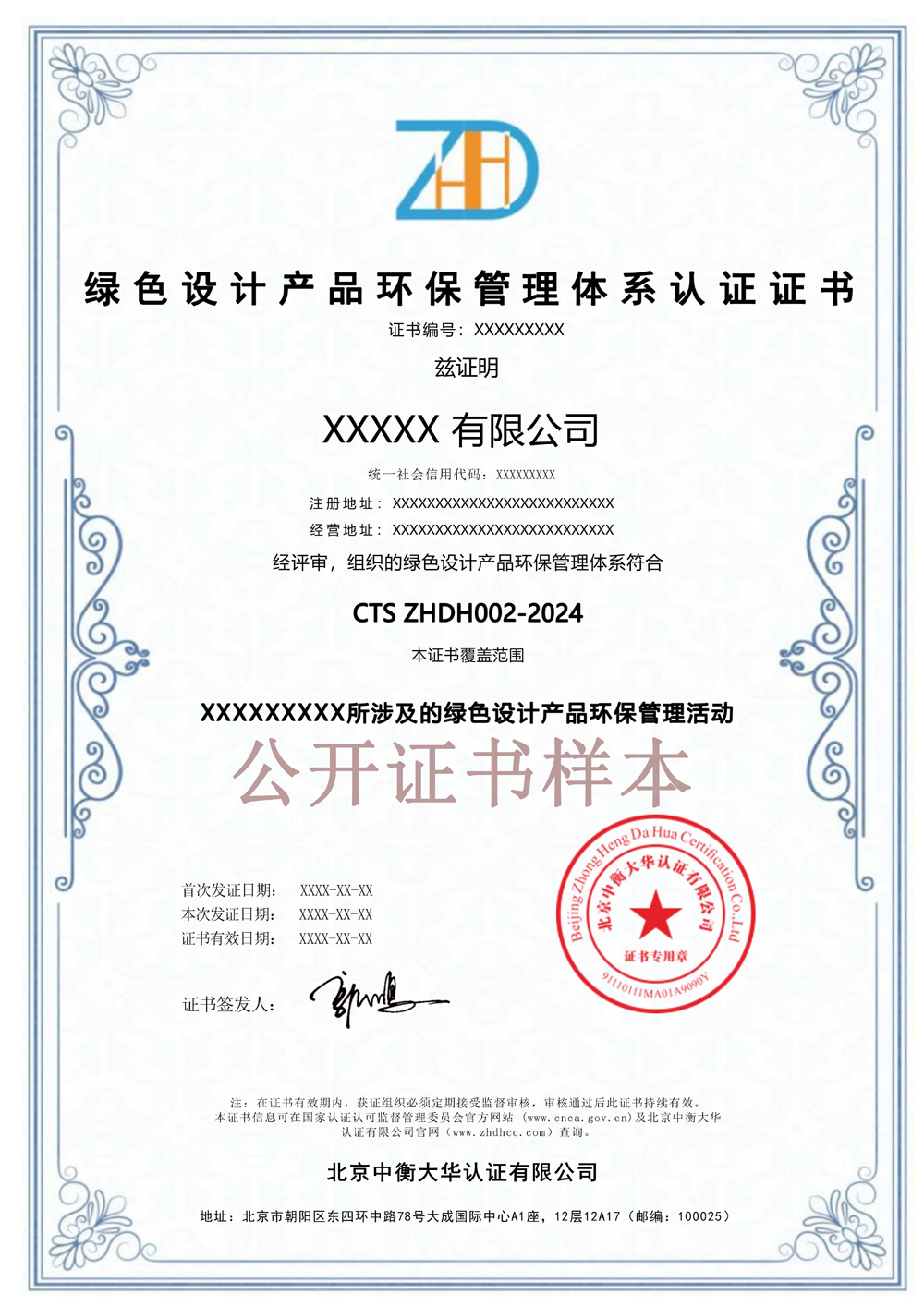 绿色设计产品环保管理体系证书电子板-中衡大华
