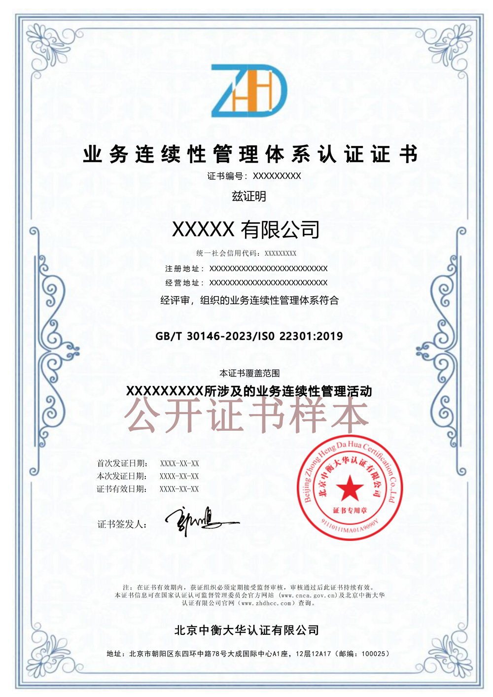 业务连续性管理体系证书电子板