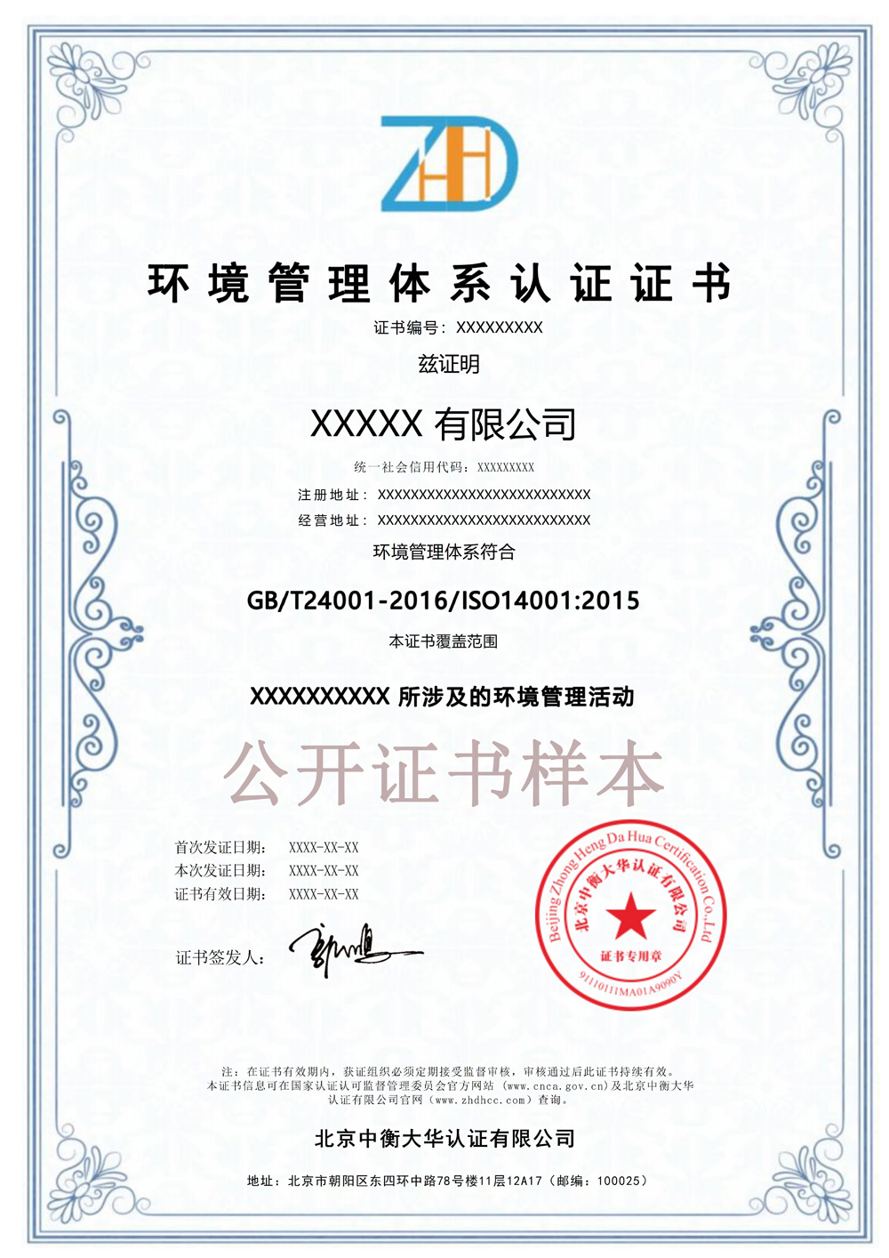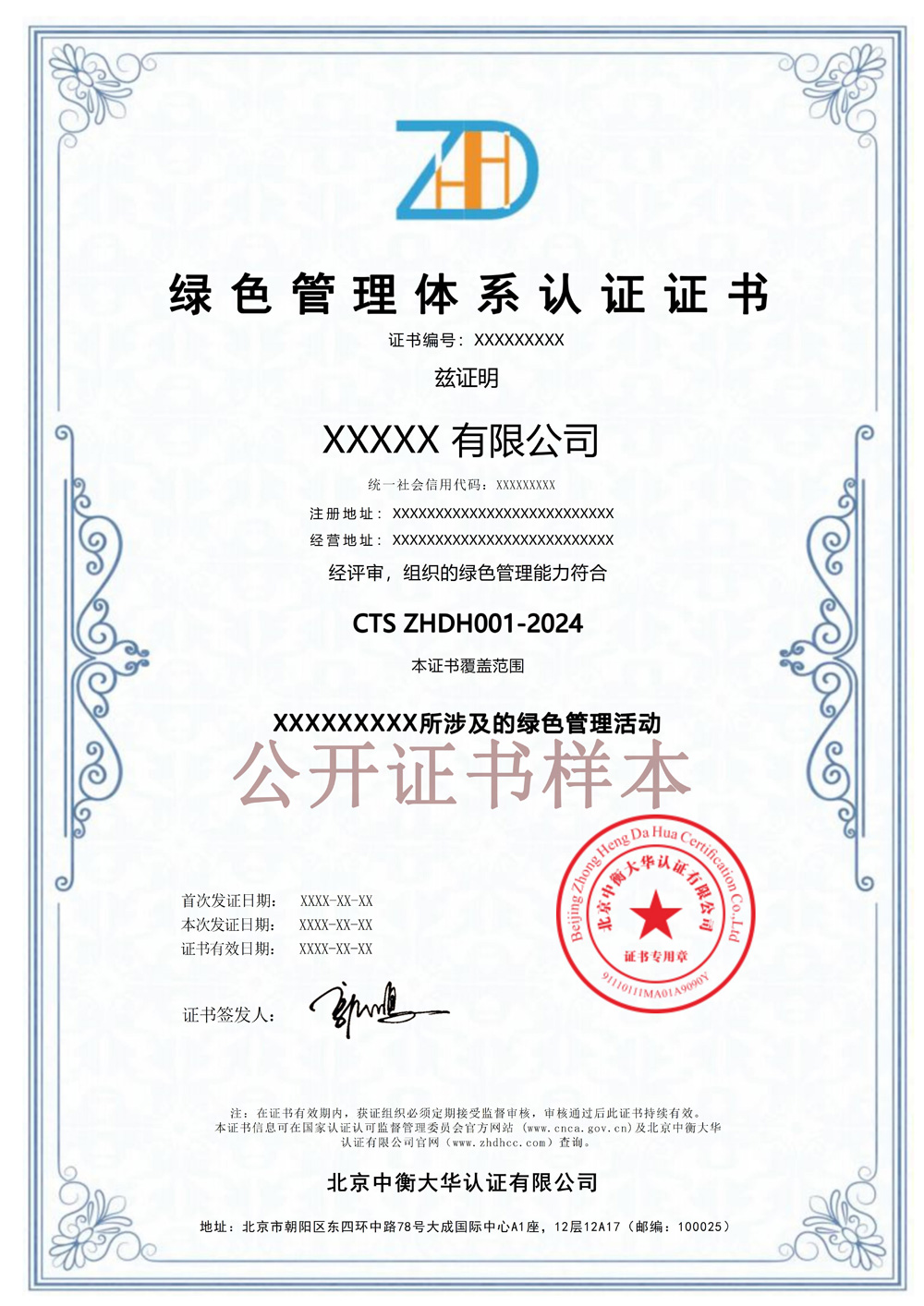 绿色管理体系认证证书样本