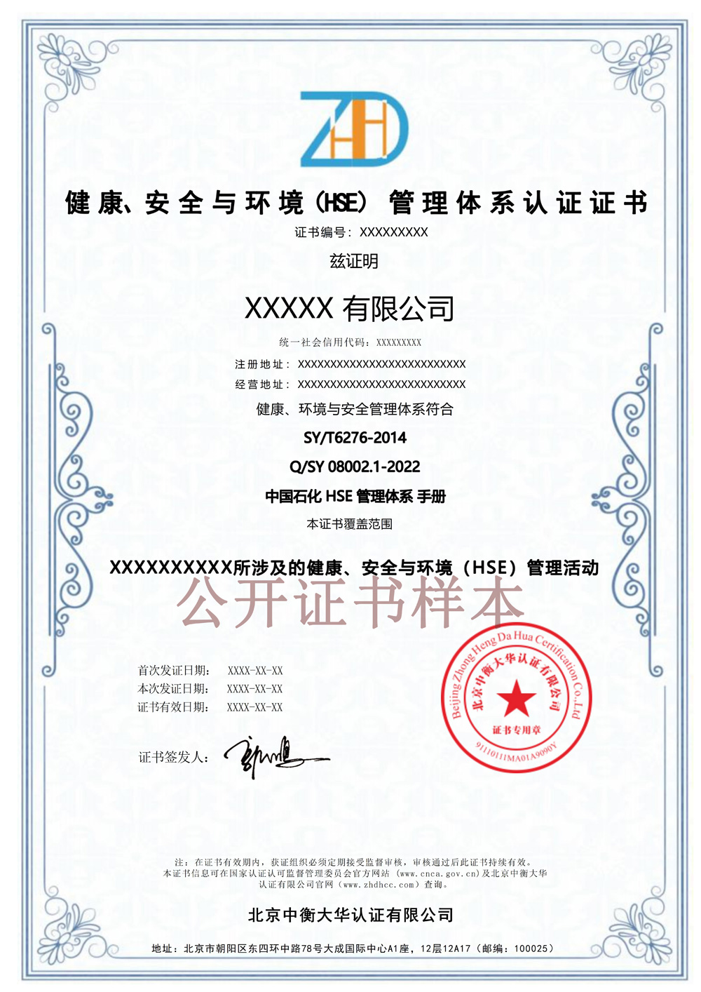 HSE管理体系证书电子板