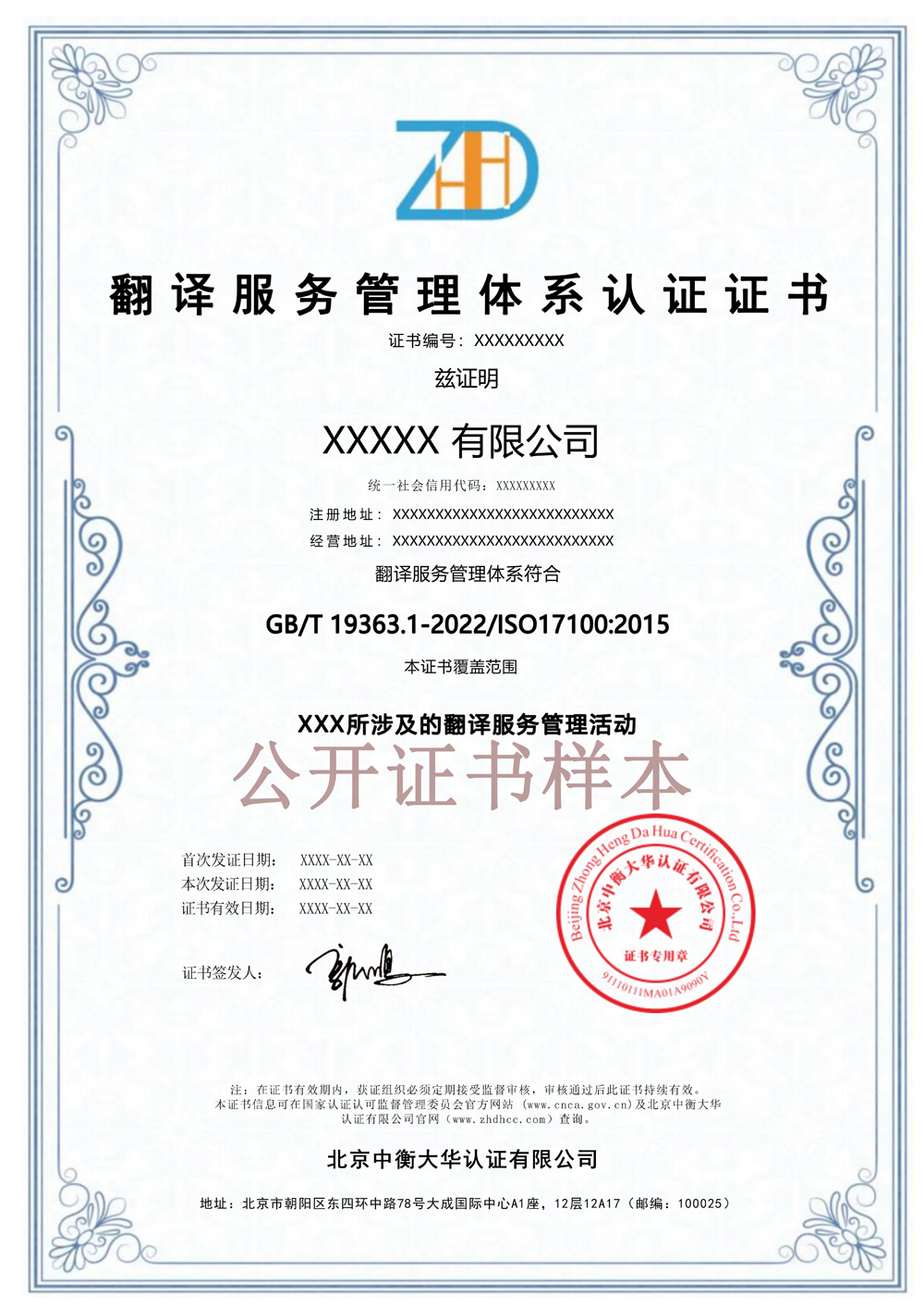 翻译证书电子板-中衡大华
