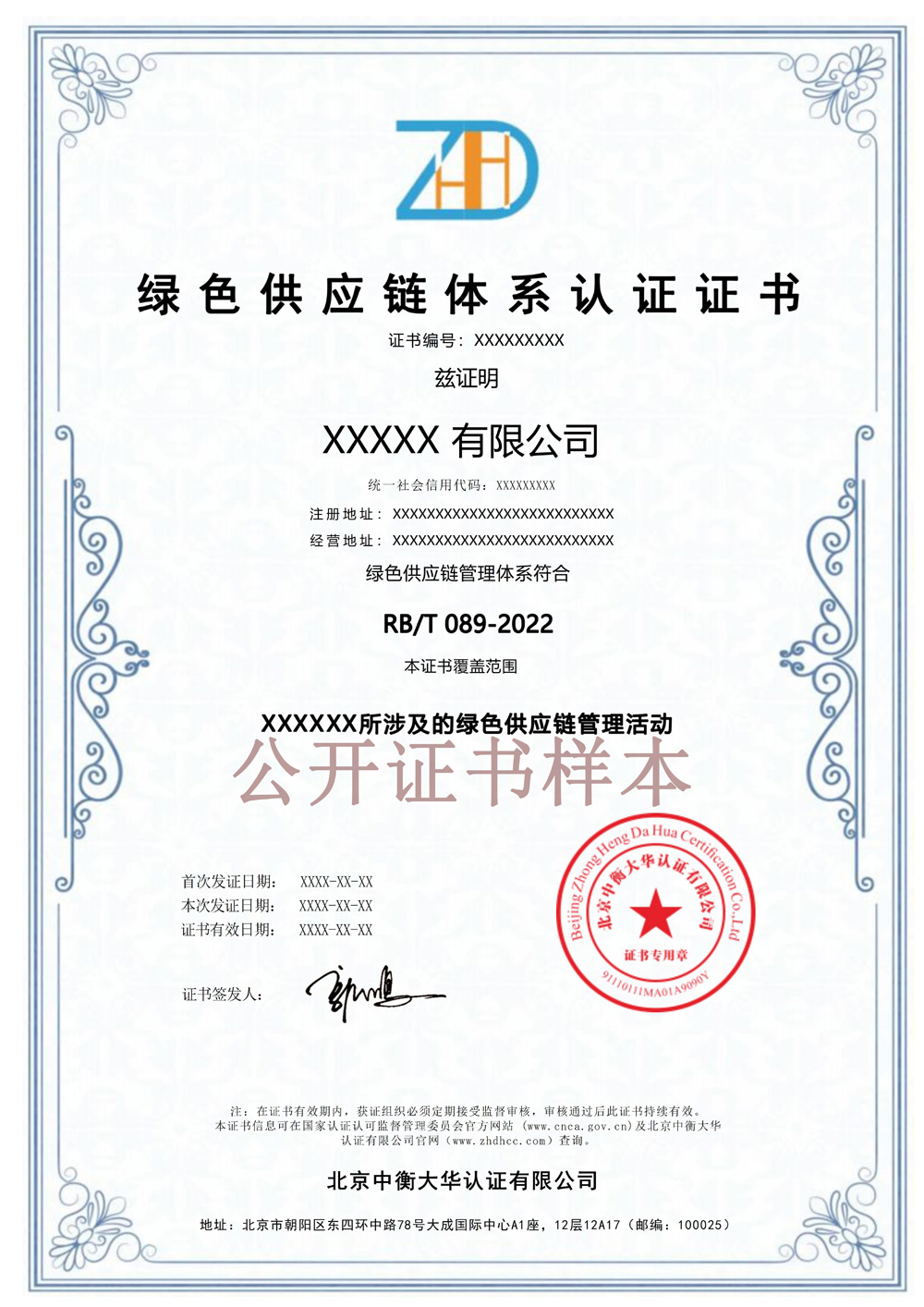 绿色供应链体系证书电子板-中衡大华