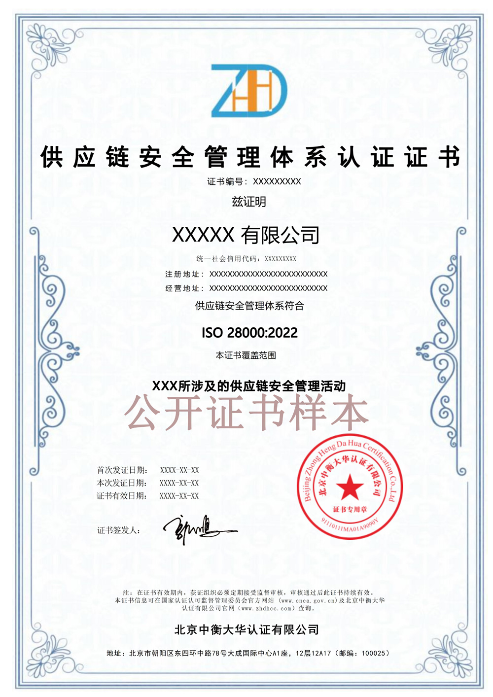 供应链安全管理体系认证证书样本
